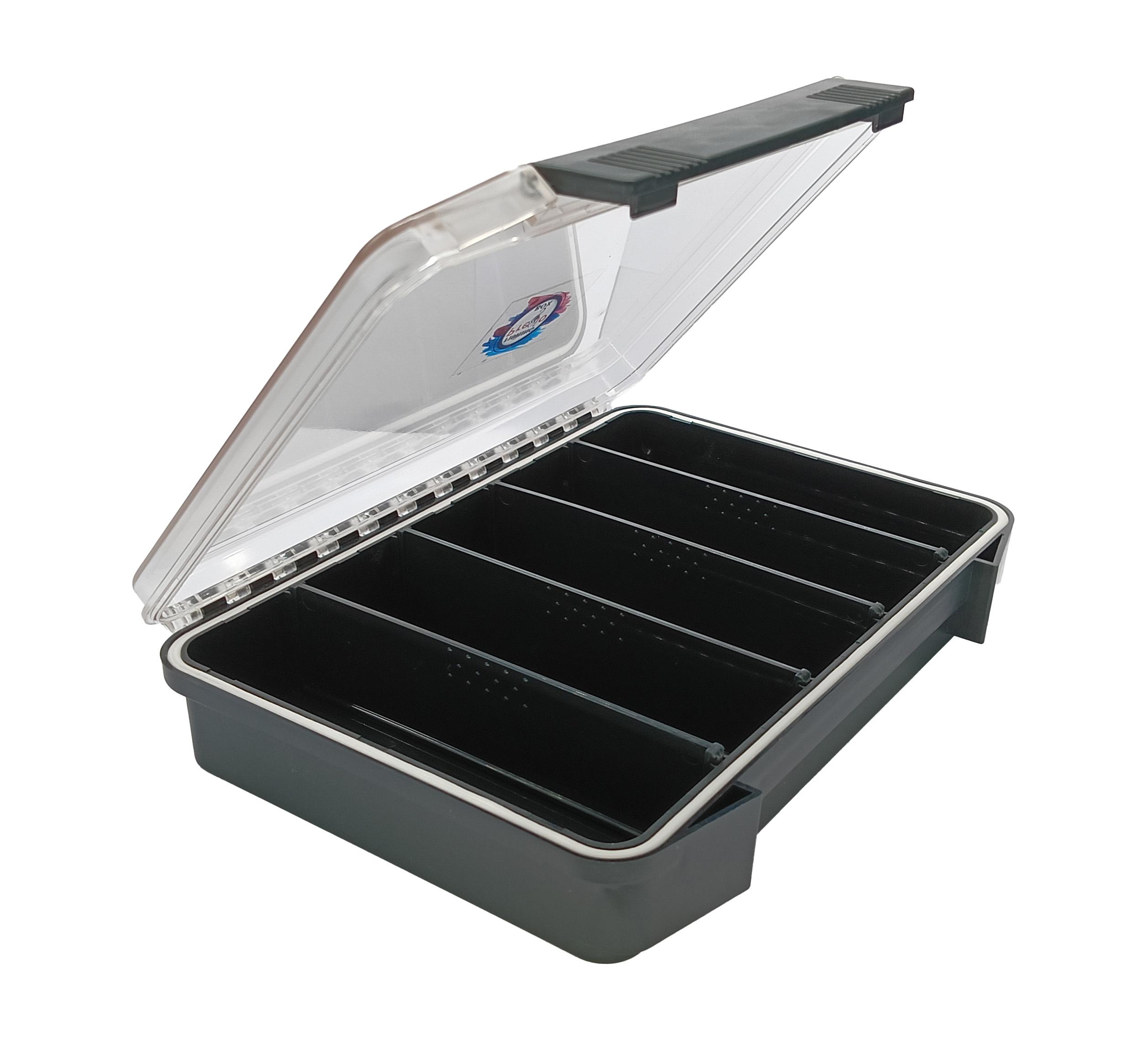 Ανώτερης ποιότητας κασετίνα με O-Ring για προστασία από το νερό! Το συγκεκριμένο μοντέλο διαθέτει προσαρμοζόμενα χωρίσματα, ώστε να αυξομειώνουμε το μέγεθός τους ανάλογα τις ανάγκες μας! Έτσι μπορούμε να βάλουμε διαφορετικού μεγέθους ψαράκια, πλανάκια, σιλικόνες, jigheads κλπ. Με λεπτό προφίλ, χωράει παντού χωρίς να πιάνει χώρο και εξυπηρετεί σε όλες τις τεχνικές.