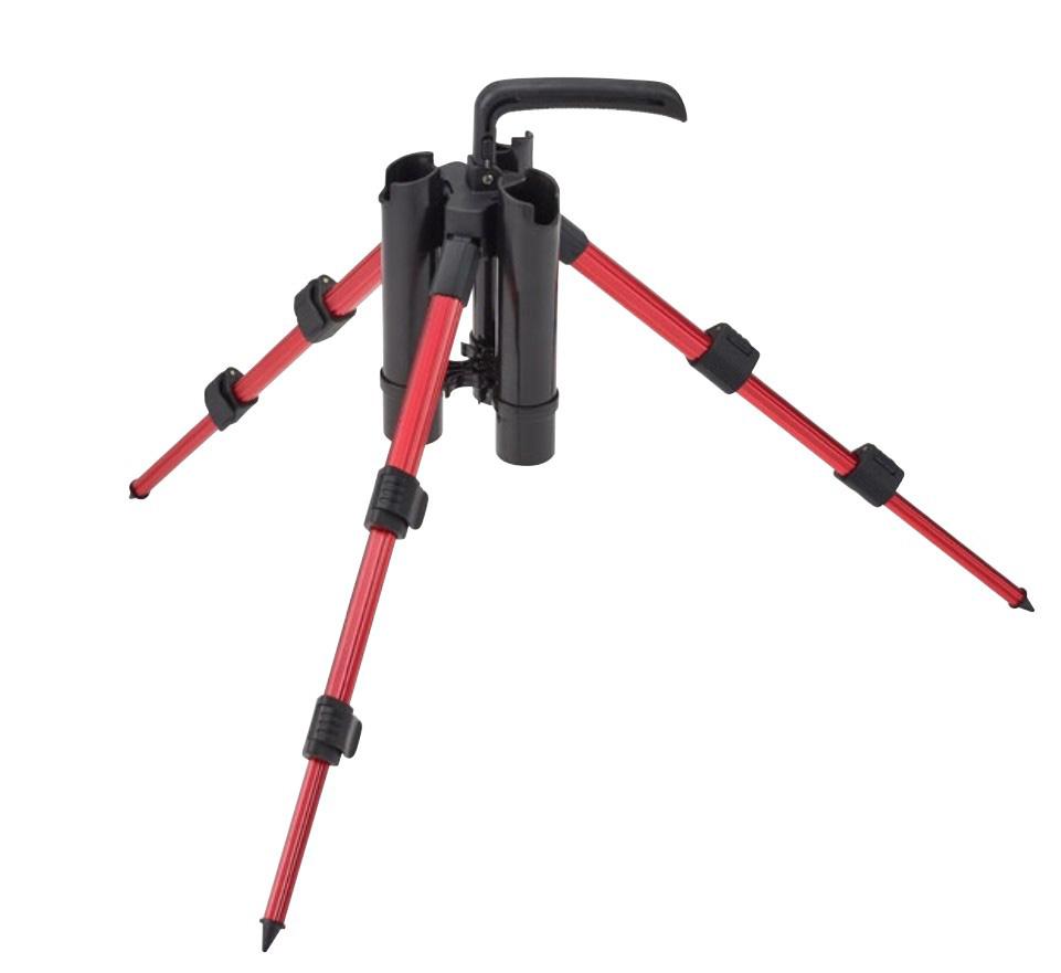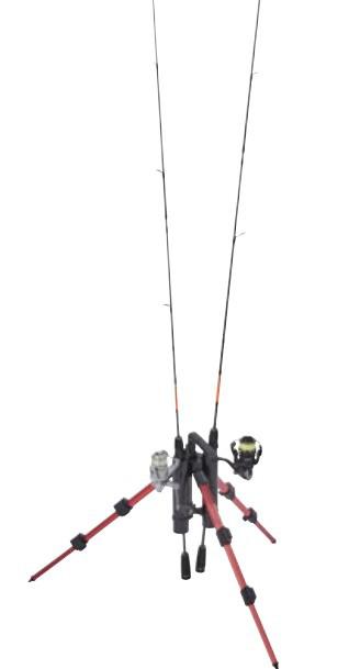 This telescopic rod holder can hold up to 3 rods. The special feature is that it can be folded up like an umbrella, making it extremely flexible.